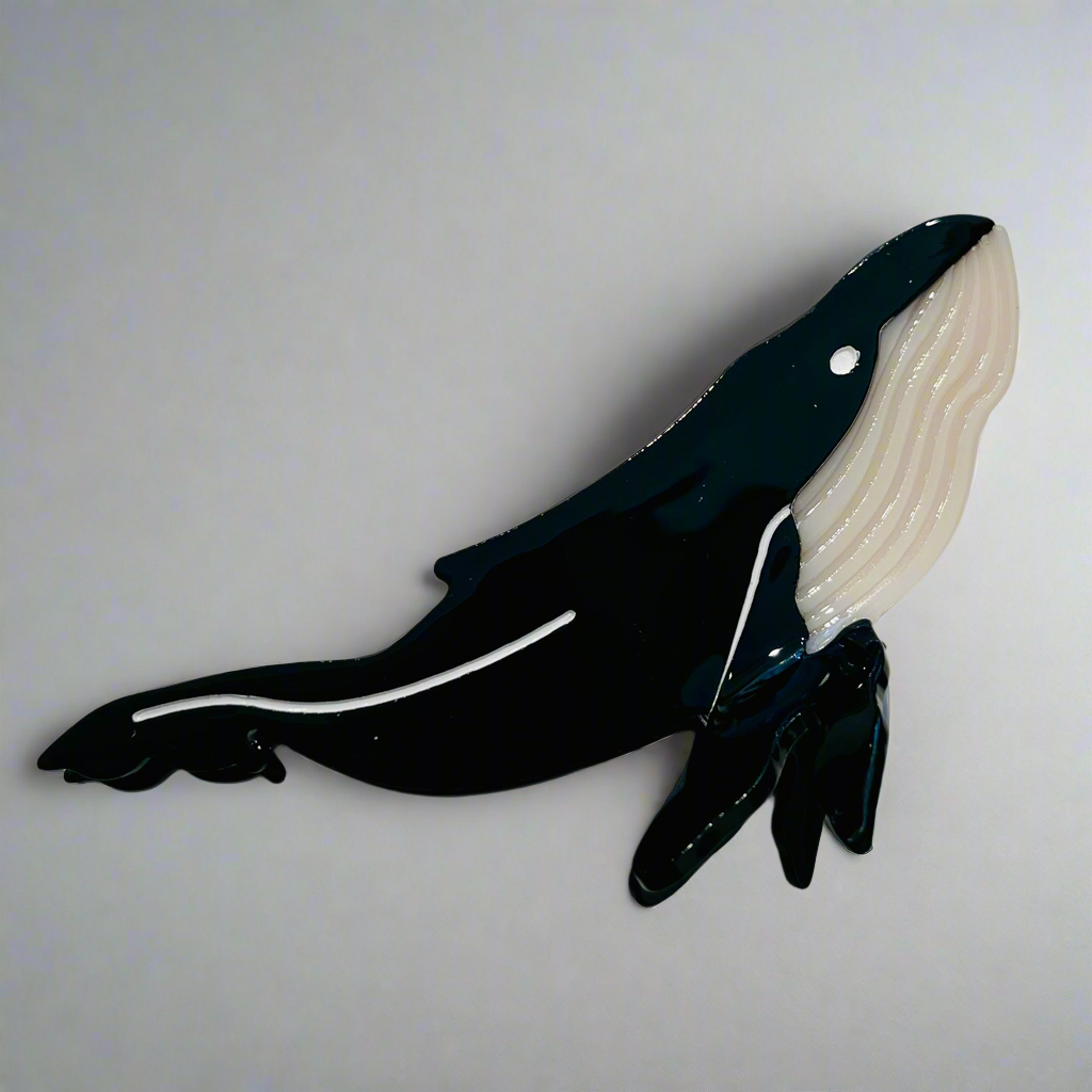 This black whale will dive into your hair and get lots of compliments. Measuring approximately 3 inches across, and also available in blue. Made of Eco friendly acetate.