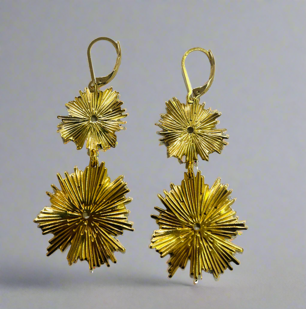 Handmade at Slant Rhyme Studio. Raw brass with 18k gold plated leverback closure.