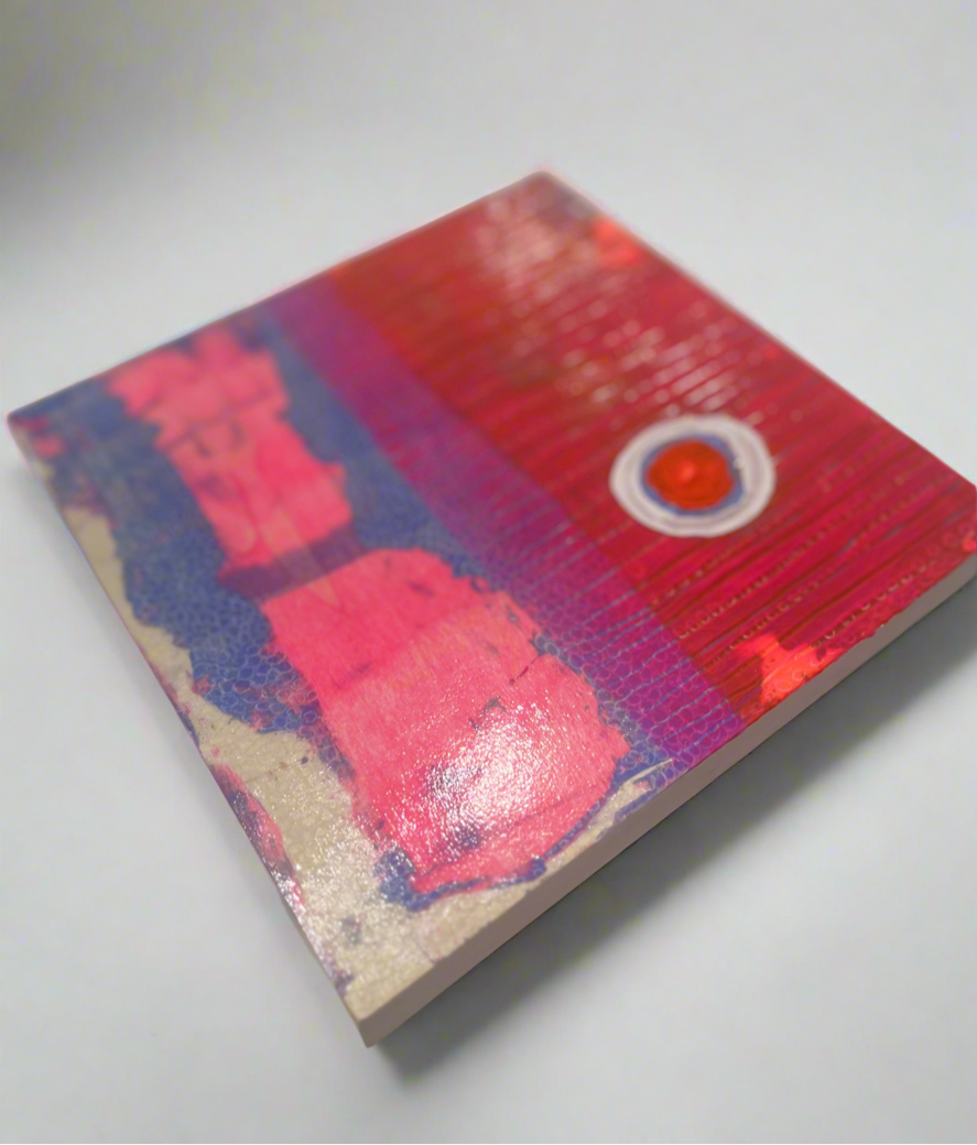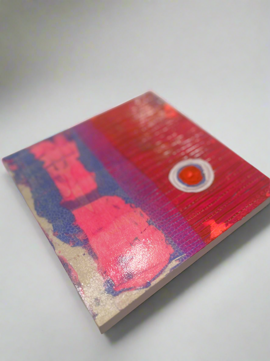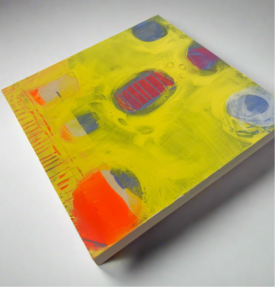 These are the six original panels created on the day that I decided to make Slant Rhyme Studio. They are acrylic paint on cradled wood panel measuring 8”x8” with 1” wooden spherical feet. Tabletop object of art that you can display other itwms on, or just enjoy on its own.