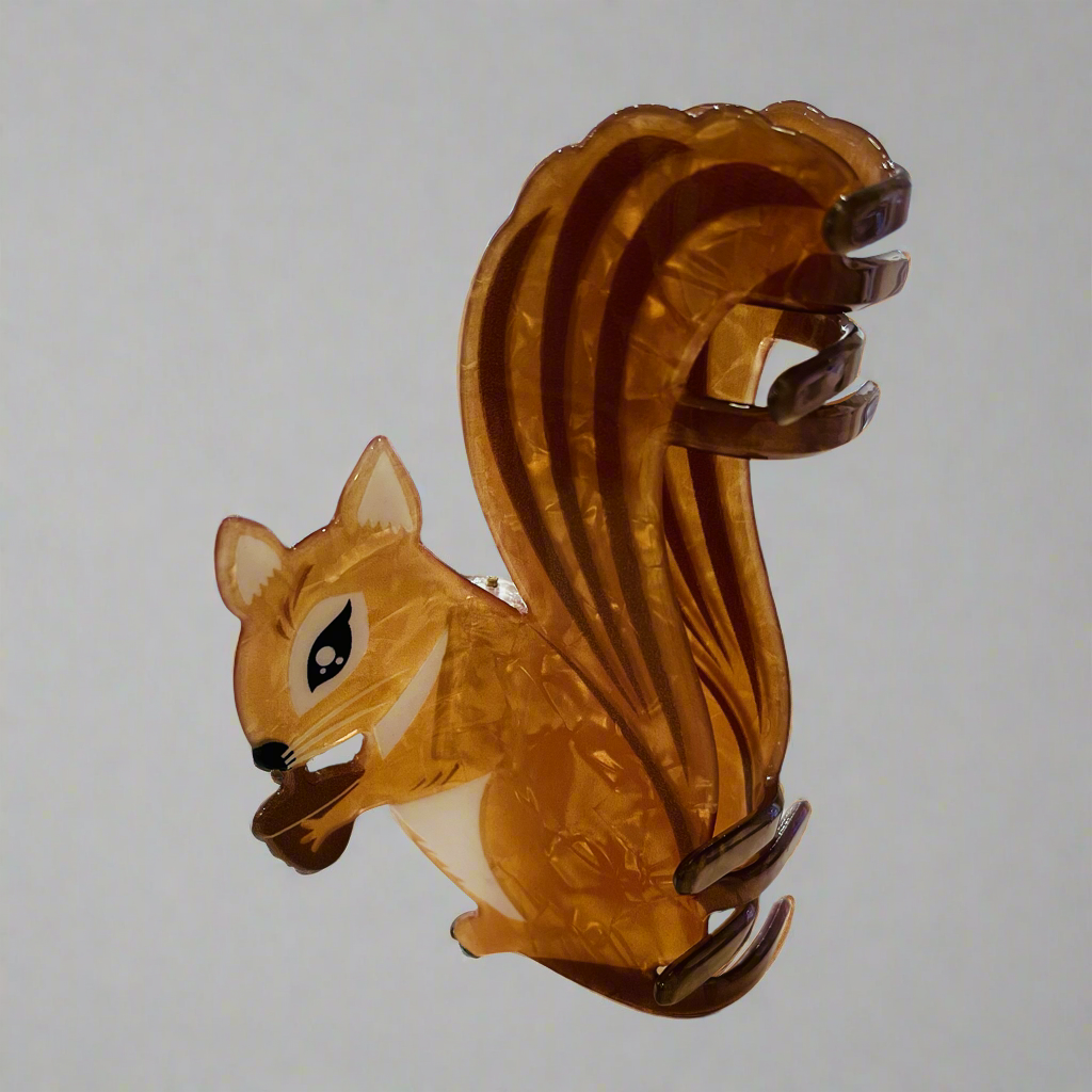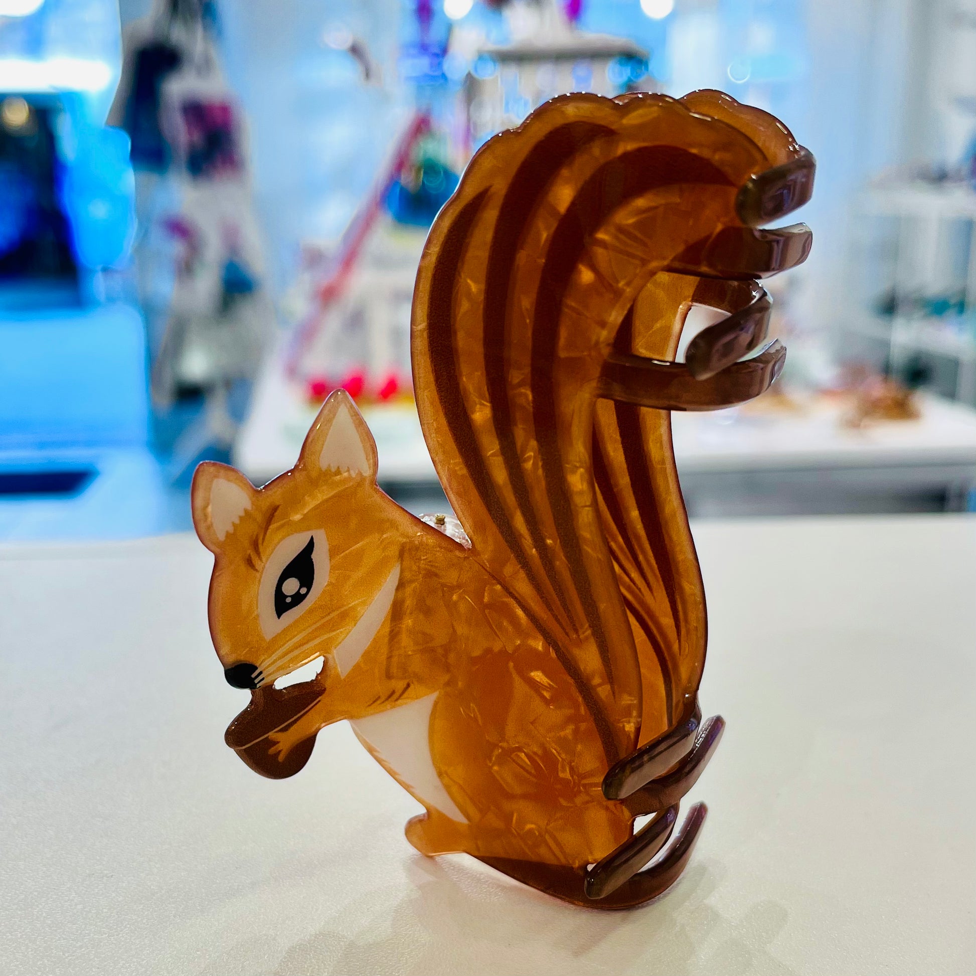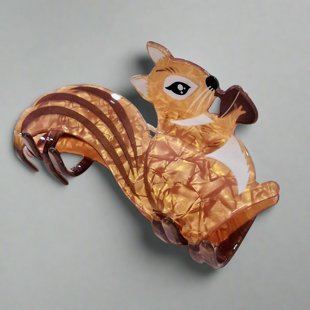 Crafted of pearlescent resin, this little chipmunk is nibbling an acorn. Measures approximately 3 inches.