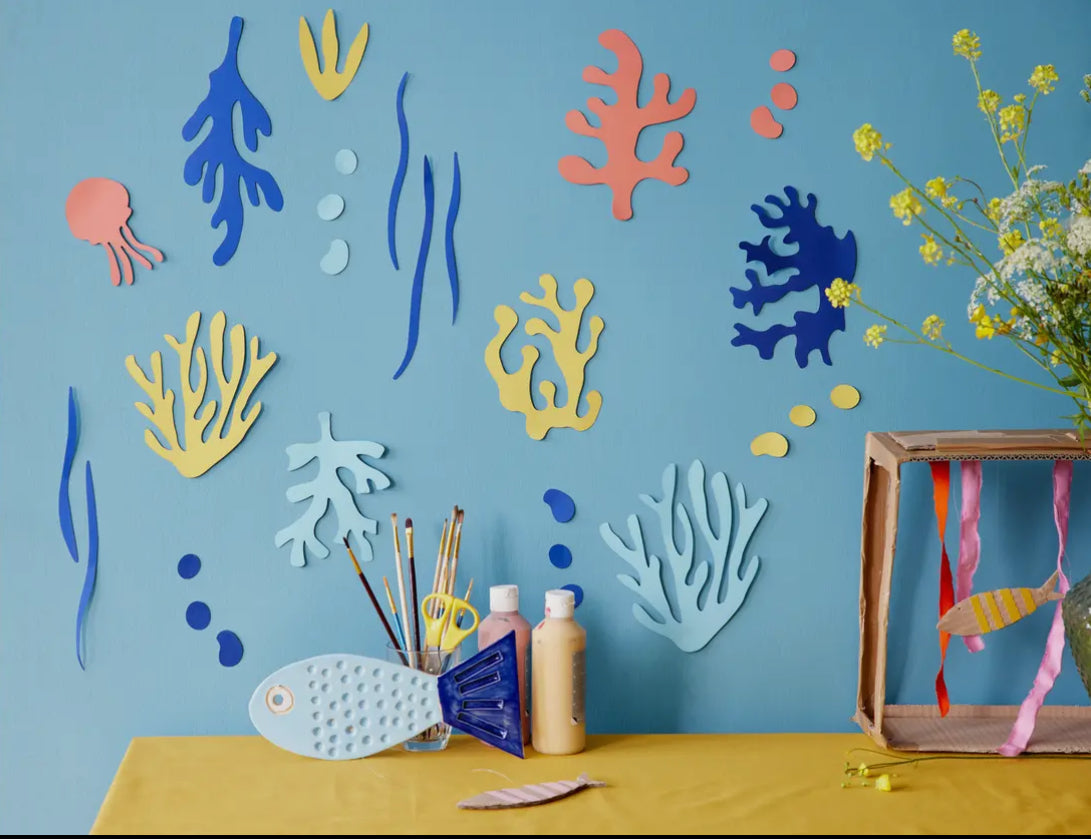 Pop out the shspes and affix wirh included foam tape. Includes 29 pieces of seaweed.
